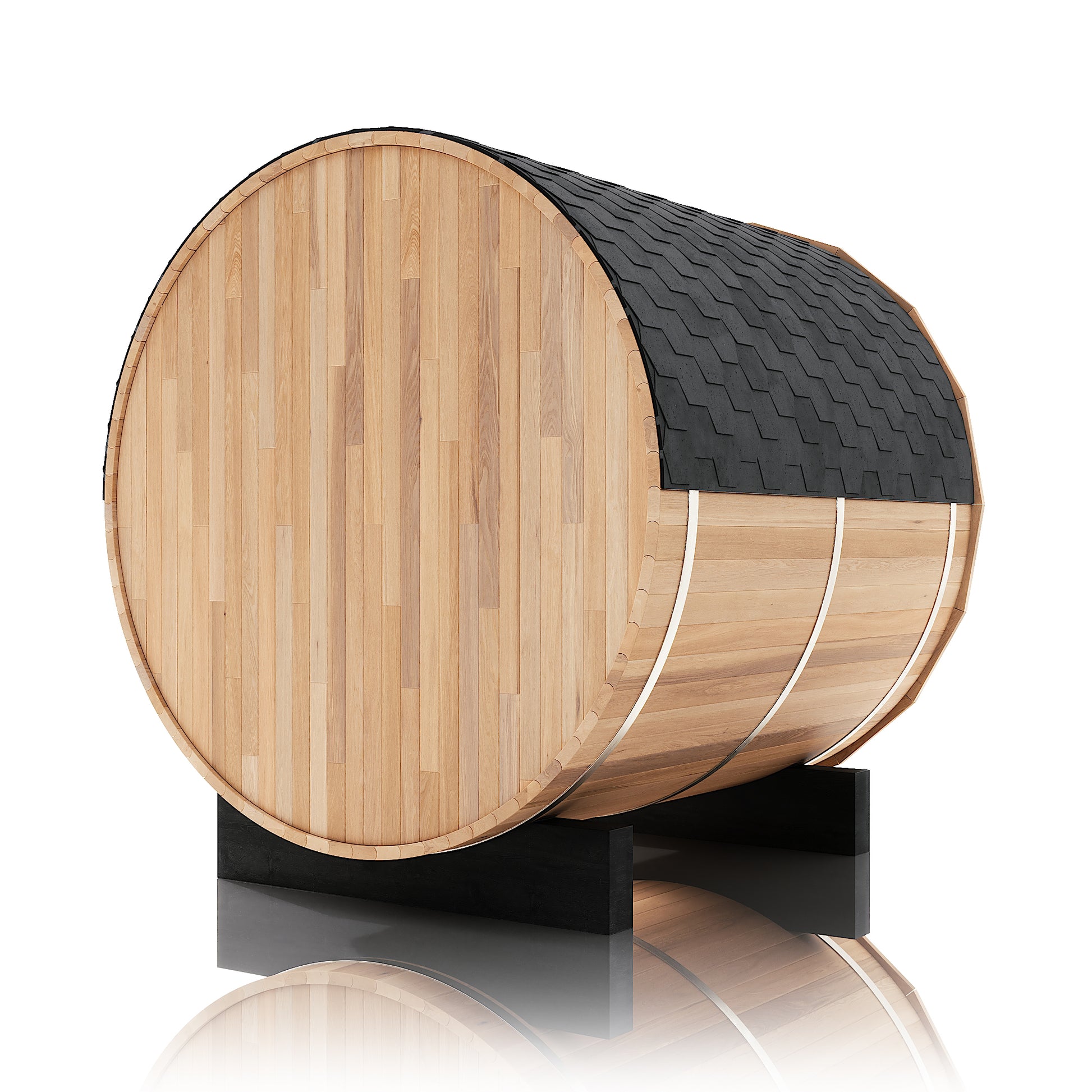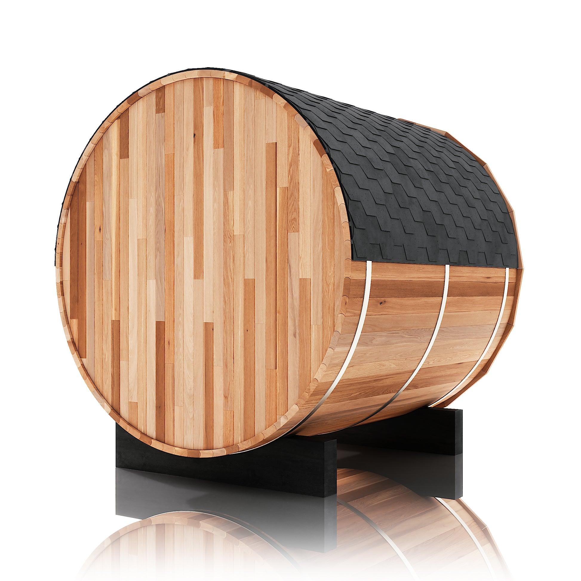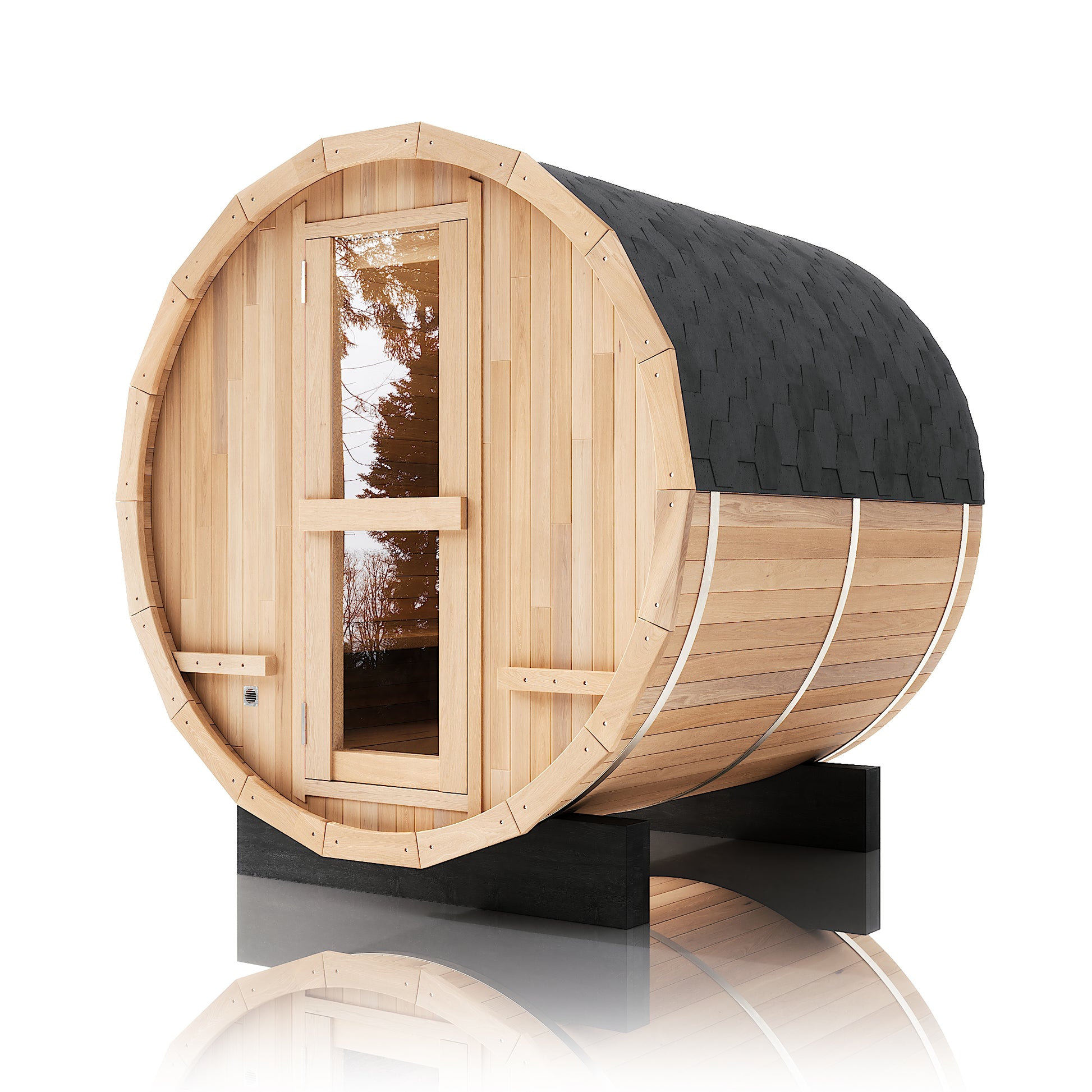 The Renegade is a rugged yet refined 4–6 person barrel sauna crafted from premium Hemlock or Red Cedar. Built for those who want big performance in a smaller footprint, it’s a compact barrel that packs a serious punch—powered by a 6 kW Harvia heater, volcanic steam stones, and two long reclining benches for a full-spectrum, deeply restorative sauna session.