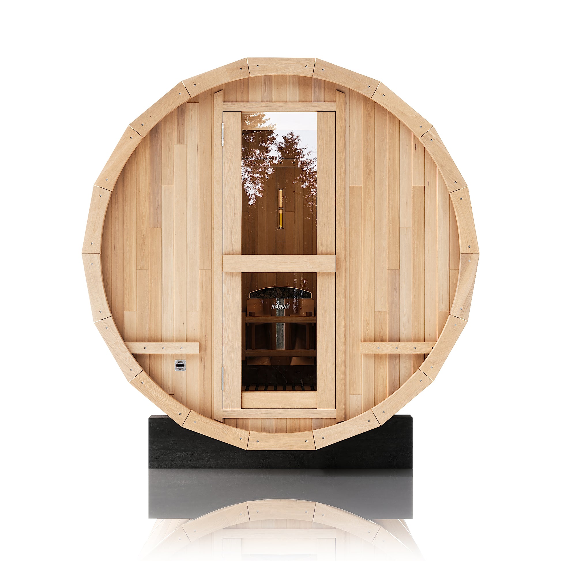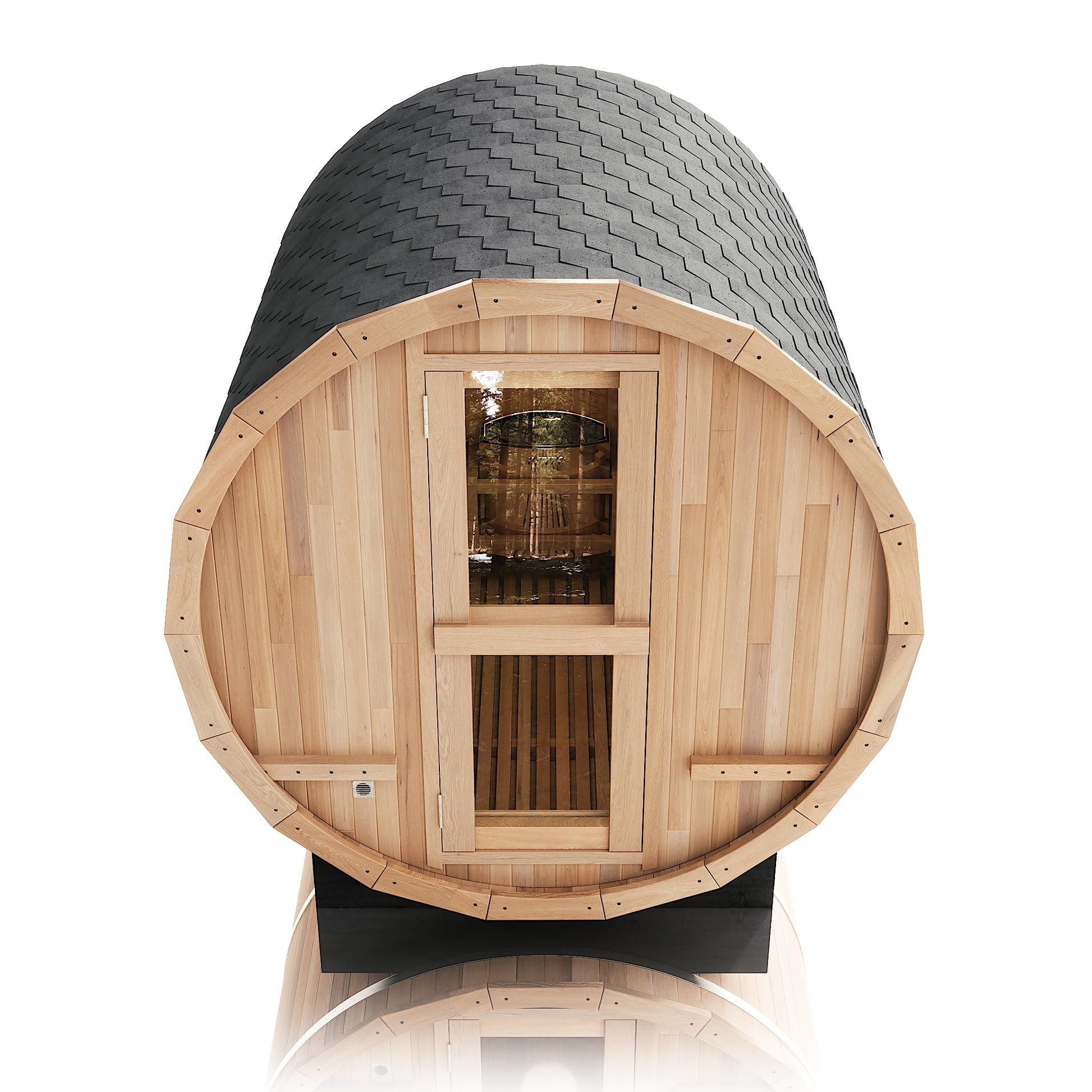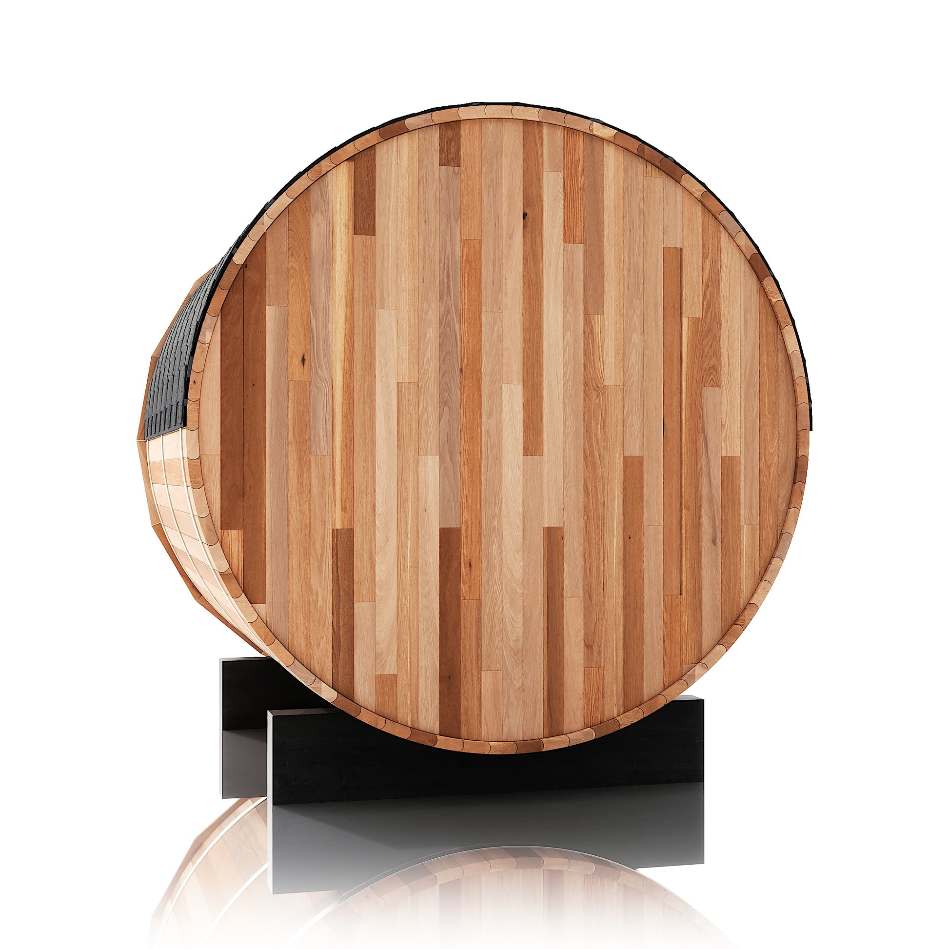 The Renegade is a rugged yet refined 4–6 person barrel sauna crafted from premium Hemlock or Red Cedar. Built for those who want big performance in a smaller footprint, it’s a compact barrel that packs a serious punch—powered by a 6 kW Harvia heater, volcanic steam stones, and two long reclining benches for a full-spectrum, deeply restorative sauna session.