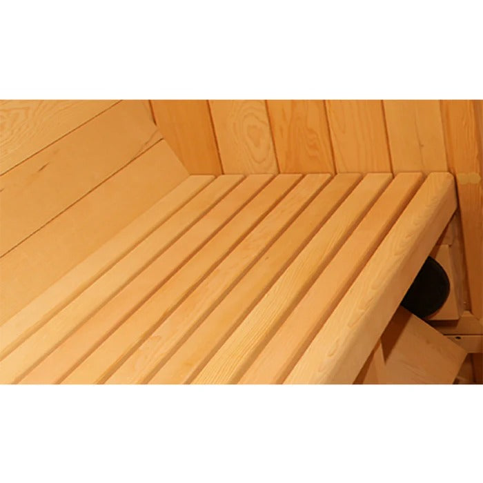 The Barrel 3 Sauna is designed to comfortably seat 2–4 adults.