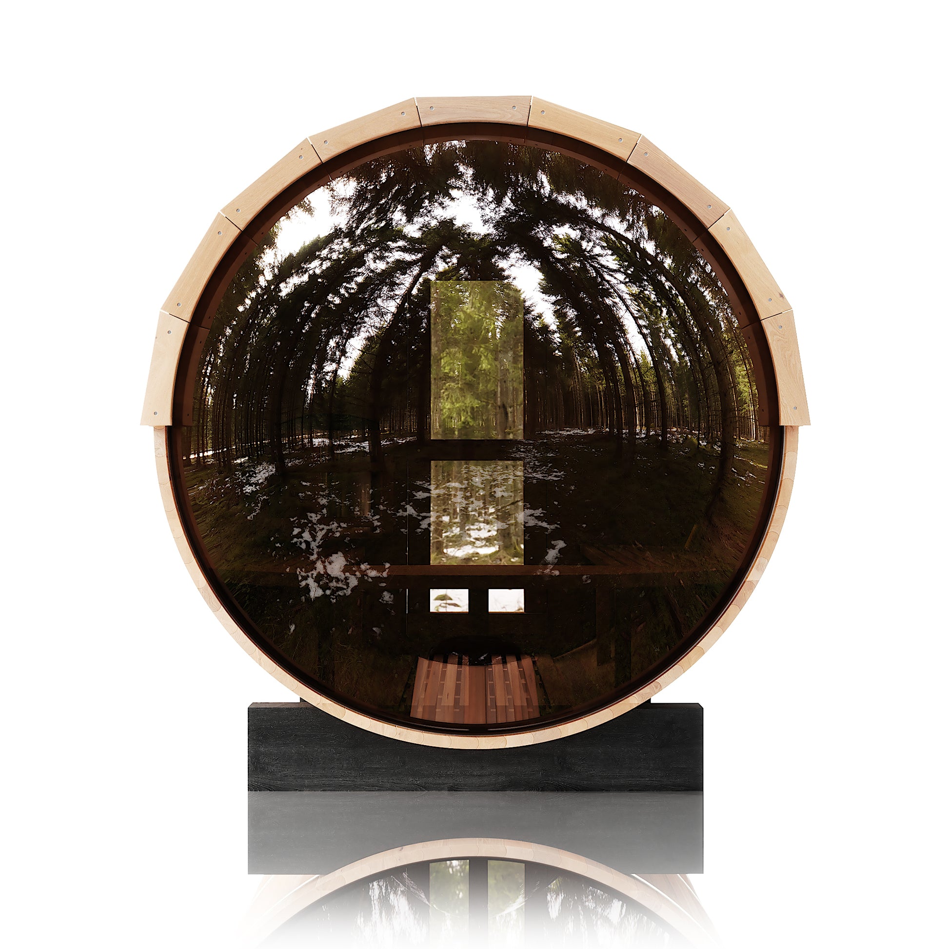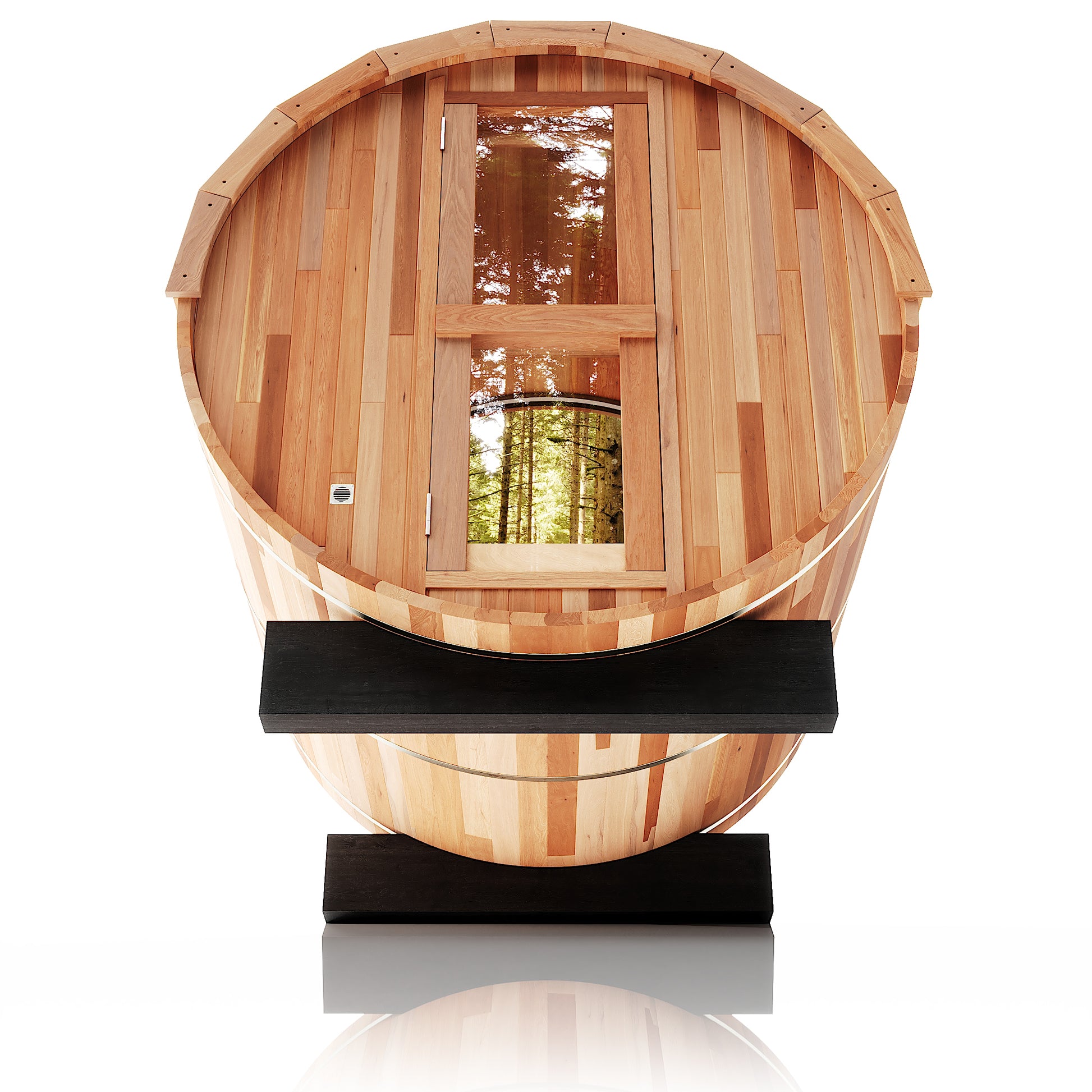The Trailblazer is our signature barrel sauna with a sweeping panoramic window, made for those who love big views and the beauty of nature as part of their ritual. Designed for up to six people and built for full-spectrum heat and effortless luxury, it’s the perfect sauna for gathering, hosting, and letting the good times flow.